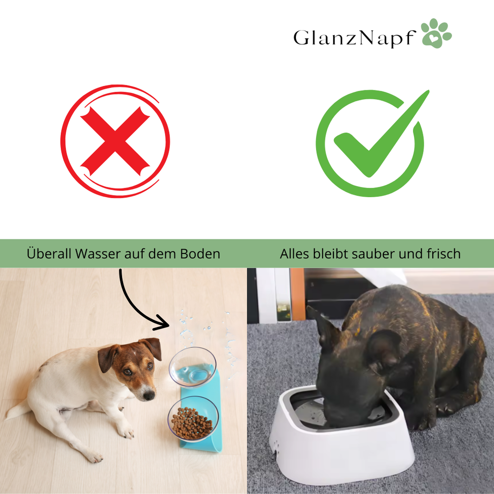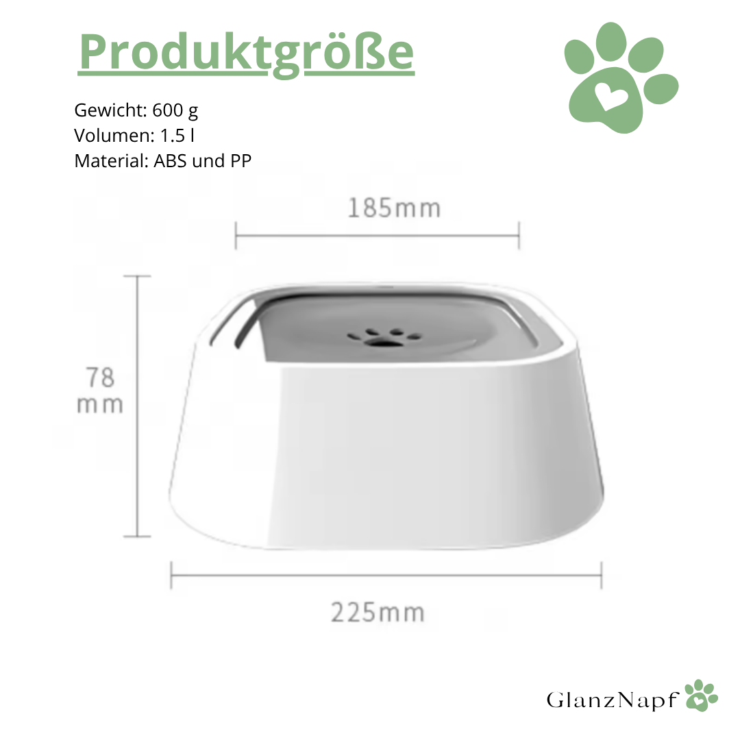 Ja! Dank der innovativen Schwimmscheibe und des erhöhten Randes bleibt das Wasser im Napf – nicht auf dem Boden. Selbst bei energiegeladenen Hunden bleibt Ihr Zuhause sauber und trocken.