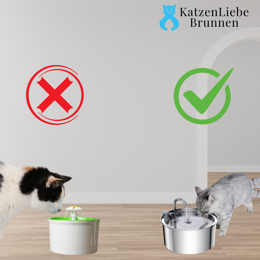 Wir empfehlen, den KatzenLiebe Brunnen einmal pro Woche zu reinigen. Dank des Edelstahls gelingt das in wenigen Minuten – keine Schleim- oder Geruchsbildung wie bei Plastikbrunnen.