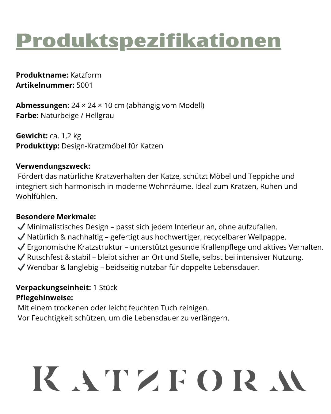 Katzform unterstützt dieses natürliche Verhalten auf sichere Weise, wodurch sich deine Katze entspannter und ausgeglichener fühlt.