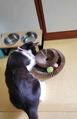 Stelle Katzform auf einen stabilen Untergrund und lass deine Katze sie selbst erkunden.